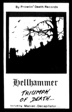 Hellhammer's second demo Triumph of Death derives from the same sessions as Death Fiend (and the track list overlaps considerably). It is quite literally more of the same.